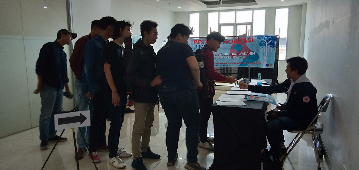 Pada hari Senin tanggal 21 Oktober 2019 di Ruang 7.013, dilakukan pemilihan Ketua dan Wakil Ketua HIMA 2019/2020 oleh seluruh Mahasiswa dan Dosen Prodi Arsitektur UNIKOM. Dan pada sore hari dilakukan perhitungan suara terhadap kedua kandidat. Hasil menunjukan Andrea Putra O.P (10417011) terpilih sebagai Ketua HIMA 2019/2020 dan Muhamad Amar Farhan (10417005) terpilih sebagai Wakil Ketua HIMA 2019/2020.