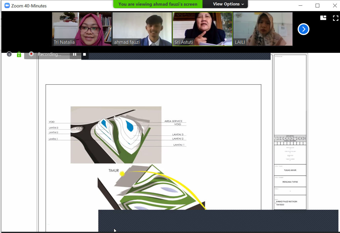 Ditengah pandemik seperti saat ini, kegiatan perkuliahan tetap berjalan walaupun secara daring. Seperti halnya Sidang Preview 1 Studio Tugas Akhir yang tetap dilaksanakan secara daring guna Lulus Tepat Waktu bagi Mahasiswa Arsitektur Unikom. Sidang Preview 1 Studio Tugas Akhir dilaksanakan dengan pembagian tiga kelompok sidang. Yang dilaksanakan pada tanggal 8-9 Mei 2020 melalui Aplikasi Zoom. Pembagian kelompok sidang menggunakan analisis Cluster berdasarkan pilihan Judul Tugas Akhir yang sesuai dengan Minat serta Keahlian para Dosen Penguji.