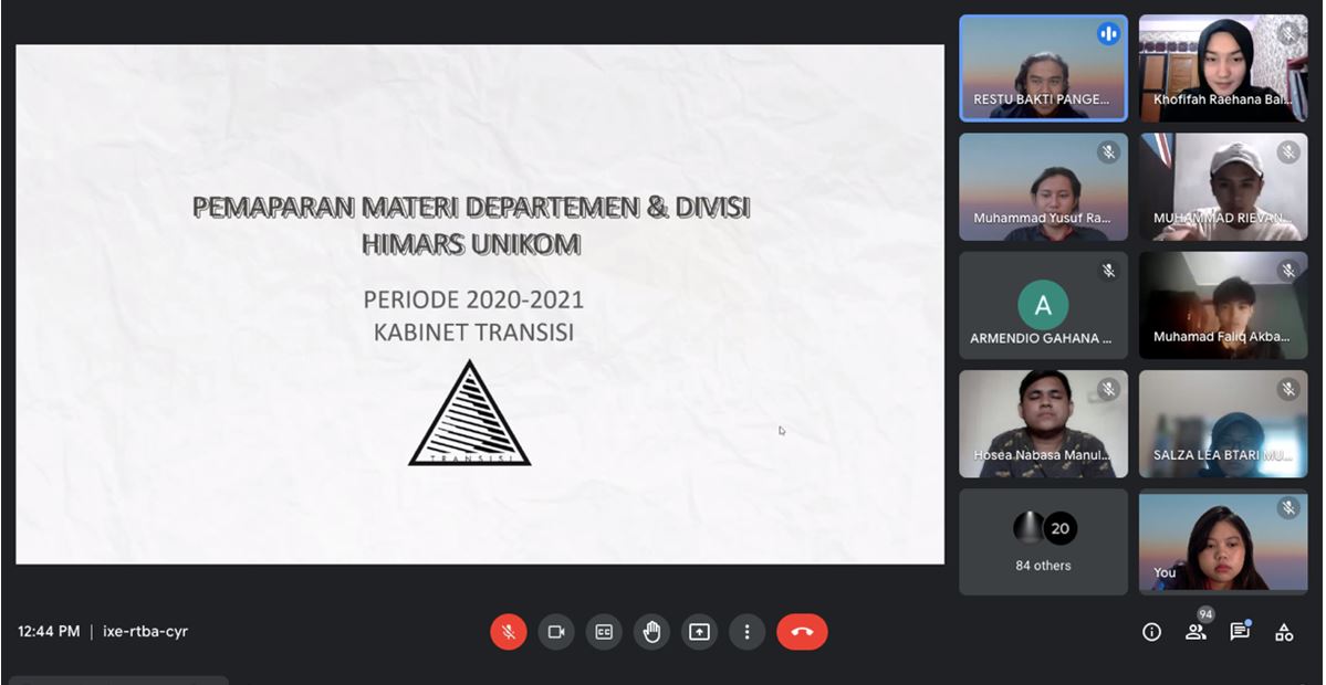 Acara ini diikuti oleh seluruh Mahasiswa Baru angkatan 2020/2021 dan Pengurus HIMARS periode 2020/2021. Pengurus HIMARS memaparkan mengenai Departemen dan divisi pada HIMARS periode 2020/2021. Sehingga diharapkan Mahasiswa Baru 2020/2021 dapat mendaftar menjadi anggota muda HIMARS sesuai dengan divisi yang diminatinya.