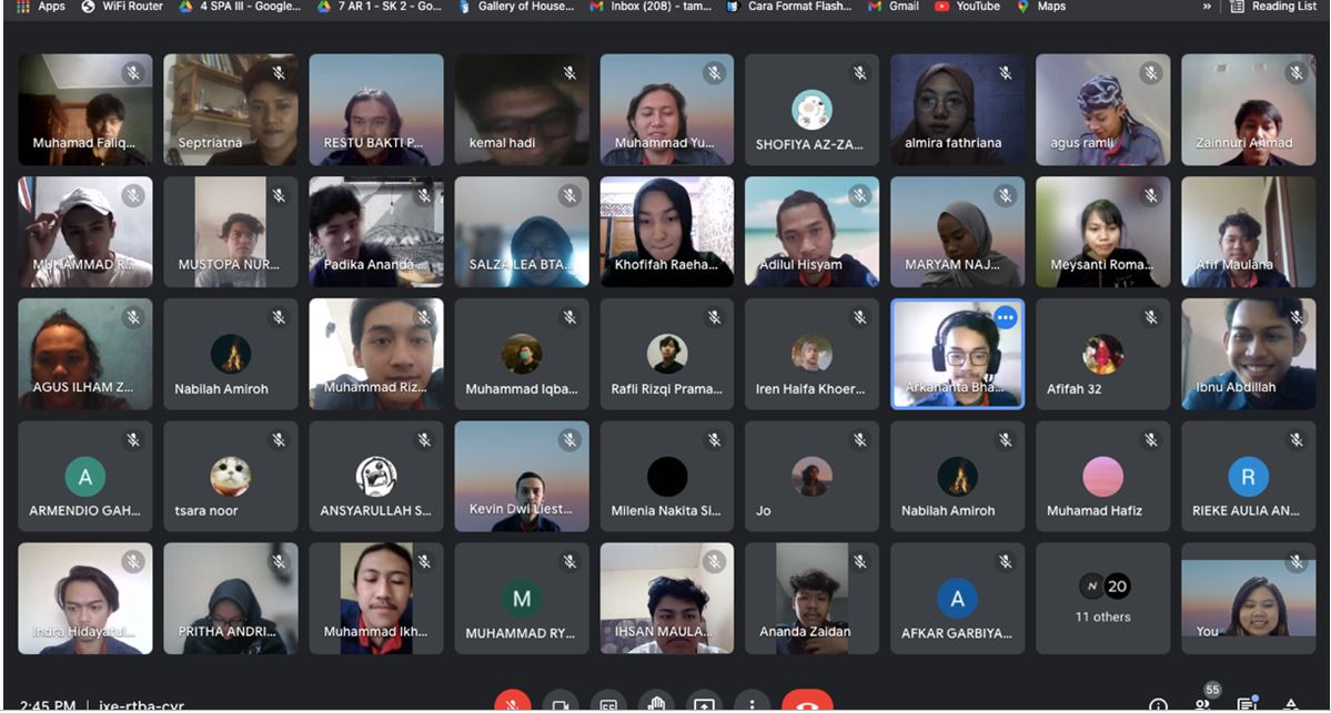 Setelah dilaksanakannya acara INAUGURASI “PENGKADERAN : ALTERNASI REFORMIS” yang berlangsung selama 3 hari pada tanggal 24-27 Juni 2021. Maka pada tanggal 15 Juli 2021, HIMA Arsitektur melaksanakan Recruitment Anggota Muda HIMARS 2020/2021 yang dilaksanakan menggunakan Media Video Conference (Google Meet).