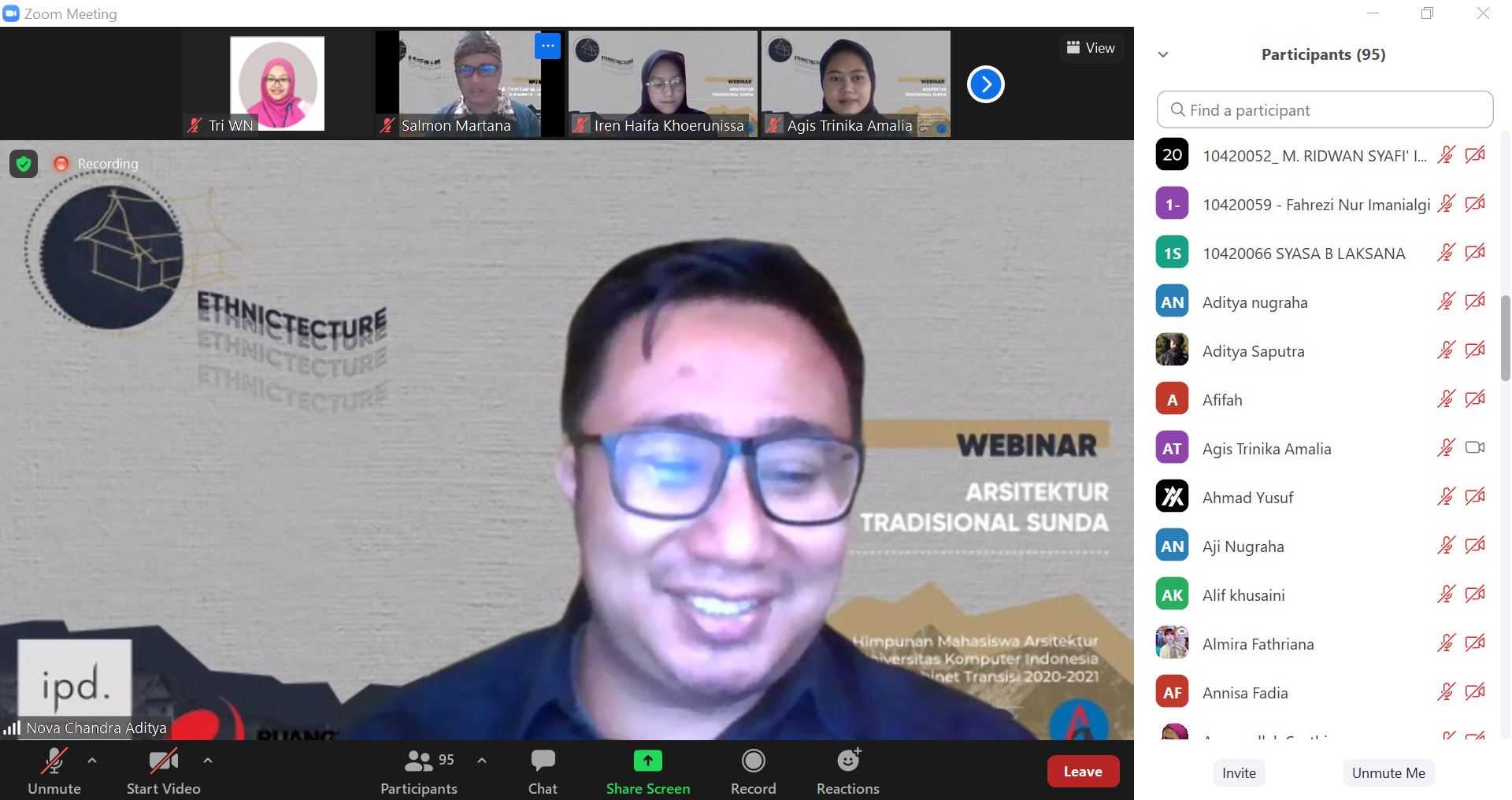 Kegiatan workshop ini merupakan bagian dari rangkaian kegiatan studi ekskursi 2021 berupa studi pembedahan arsitektur di Kampung Baduy Luar. Workshop ini dilaksanakan melalui webinar.